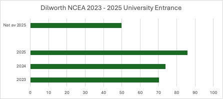 And there was a positive trend in Dilworth’s University Entrance results over the past three years, from 70.4% in 2023 to 85.9% in 2025.